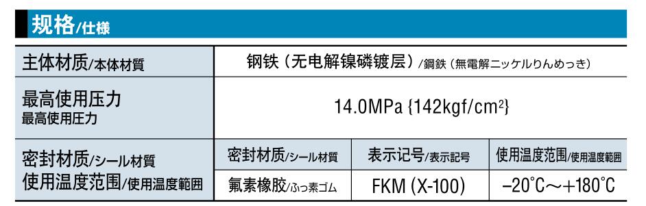 工作壓力:7.0 MPa<br /> 閥門構造:雙路開關型<br /> 適用流體:空氣、水、工作油
