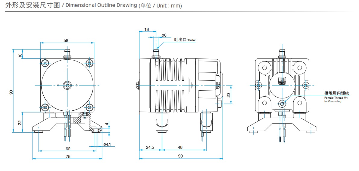 額定壓力: 4 kPa (0.04 kgf/cm2)<br /> 最大壓力: 16 kPa (0.16 kgf/cm2)<br /> 吐出空氣量: 6 L/min