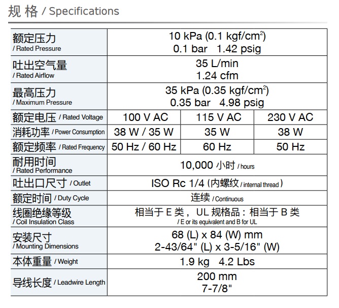 最大壓力: 35 kPa (0.35 kgf/cm2)
