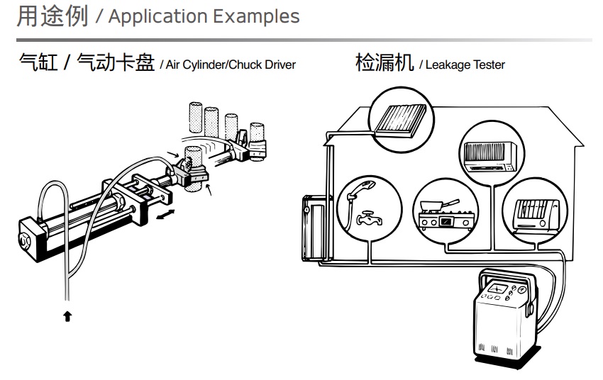 額定壓力: 200 kPa (2.0 kgf/cm2)<br /> 最大壓力: 300 kPa (3.0 kgf/cm2)<br /> 吐出空氣量: 8 L/min