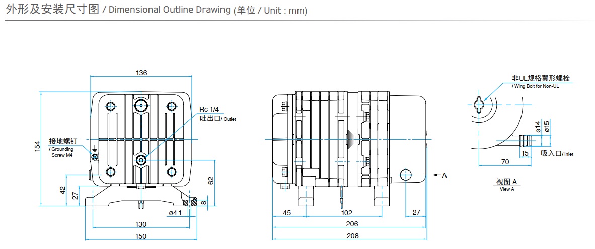 額定壓力: 10 kPa (0.1 kgf/cm2)<br /> 最大壓力: 35 kPa (0.35 kgf/cm2)<br /> 吐出空氣量: 35 L/min