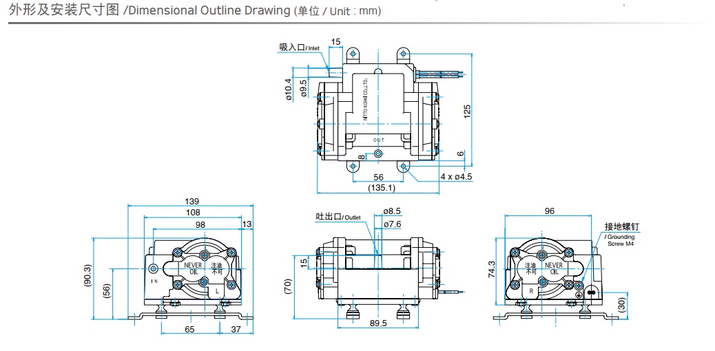 額定壓力: 100 kPa (1.0 kgf/cm2)<br /> 最大壓力: 130 kPa (1.3 kgf/cm2)<br /> 吐出空氣量: 5 L/min