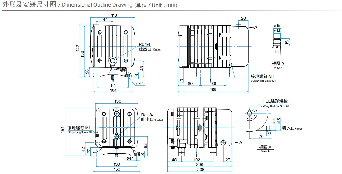 額定壓力: 10 kPa (0.1 kgf/cm2)<br /> 最大壓力: 35 kPa (0.35 kgf/cm2)<br /> 吐出空氣量: 35 L/min