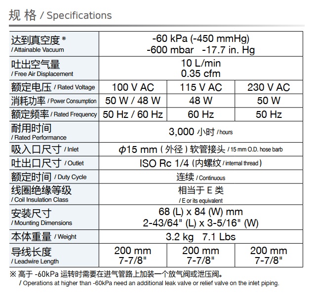 額定壓力:50 kPa (0.5 kgf/cm2)<br /> 最大壓力:80 kPa (0.8 kgf/cm2)<br /> 吐出空氣量:2.5 L/min