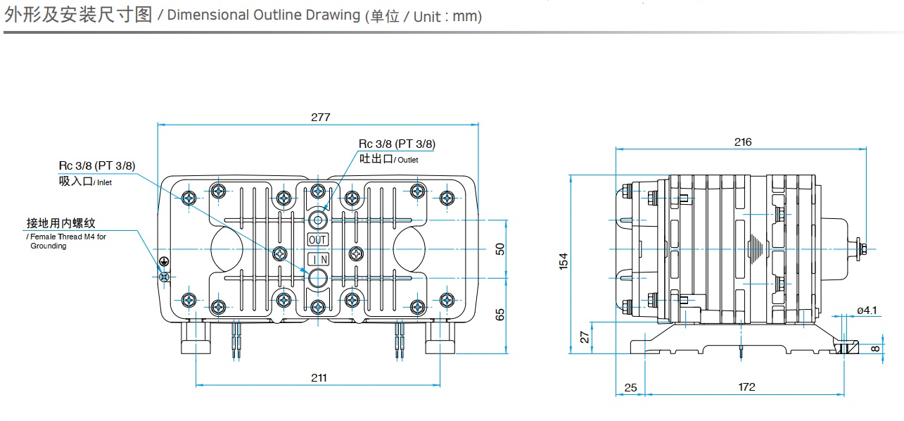 額定壓力: 200 kPa (2.0 kgf/cm2)<br /> 最大壓力: 300 kPa (3.0 kgf/cm2)<br /> 吐出空氣量: 8 L/min