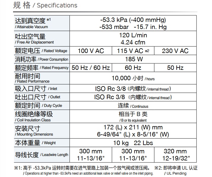 額定壓力:50 kPa (0.5 kgf/cm2)<br /> 最大壓力:80 kPa (0.8 kgf/cm2)<br /> 吐出空氣量:2.5 L/min