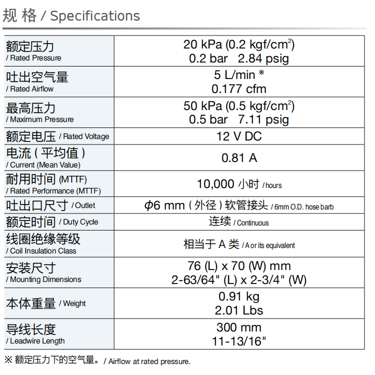 吐出空氣量: 5 L/min ※
