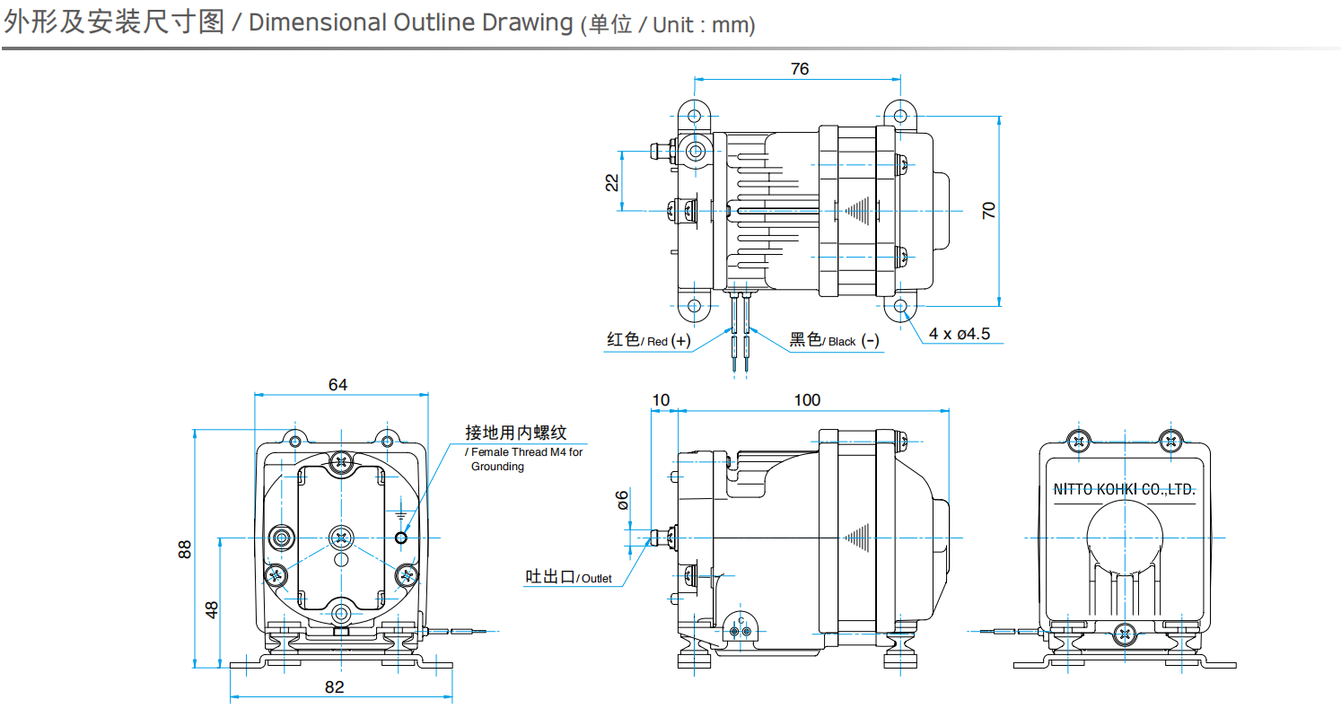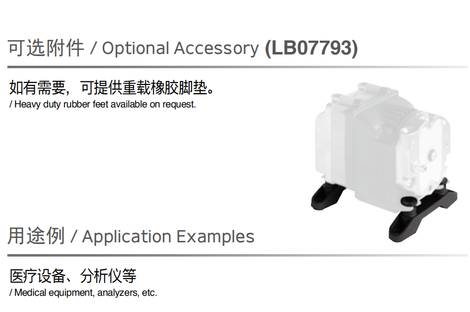 額定壓力: -26.6 kPa (-200mmHg)<br /> 最大壓力: 45 kPa (0.45 kgf/cm2)<br /> 吐出空氣量: 5 L/min<br /> 額定電壓: 12 V DC