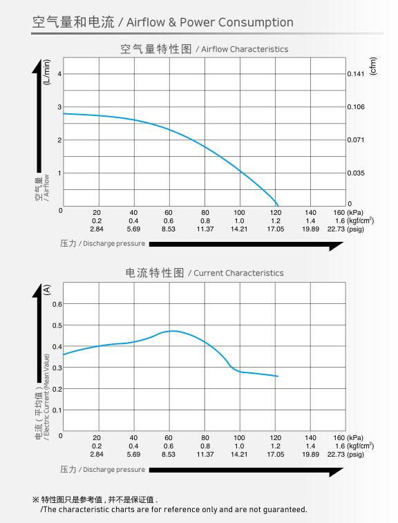 額定壓力: 100 kPa (1.0 kgf/cm2<br /> 最大壓力: 120 kPa (1.2 kgf/cm2)<br /> 吐出空氣量: 1.0 L/min ※<br /> 額定電壓: 12V