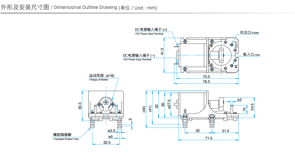 額定壓力: 20 kPa (0.2 kgf/cm2)<br /> 最大壓力: 50 kPa (0.5 kgf/cm2)<br /> 吐出空氣量: 5 L/min ※<br /> 額定電壓: 12V
