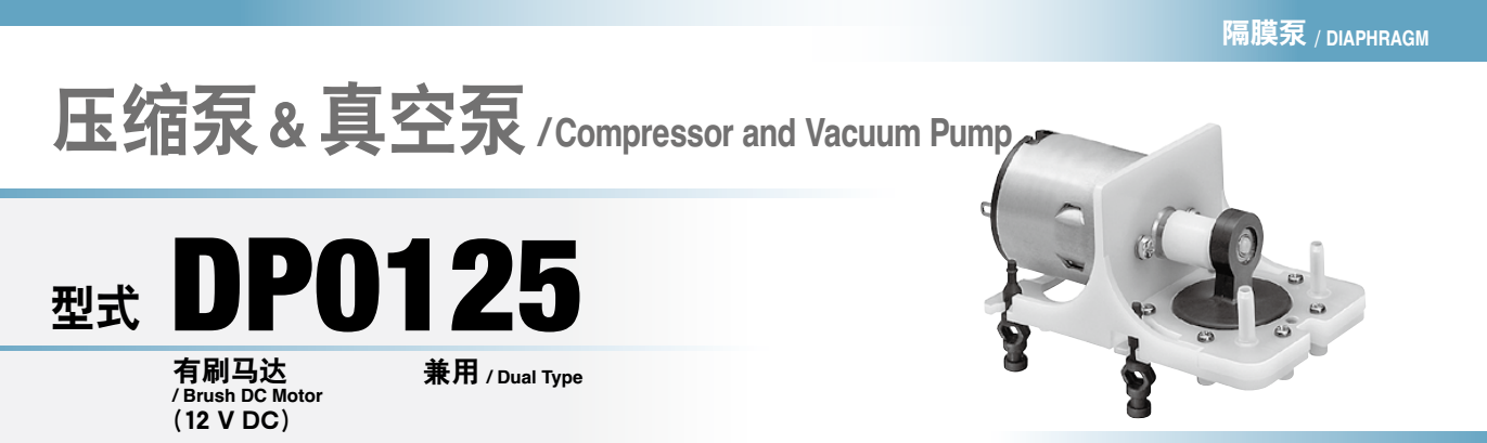 額定壓力: 100 kPa (1.0 kgf/cm2<br /> 最大壓力: 120 kPa (1.2 kgf/cm2)<br /> 吐出空氣量: 1.0 L/min ※<br /> 額定電壓: 12V