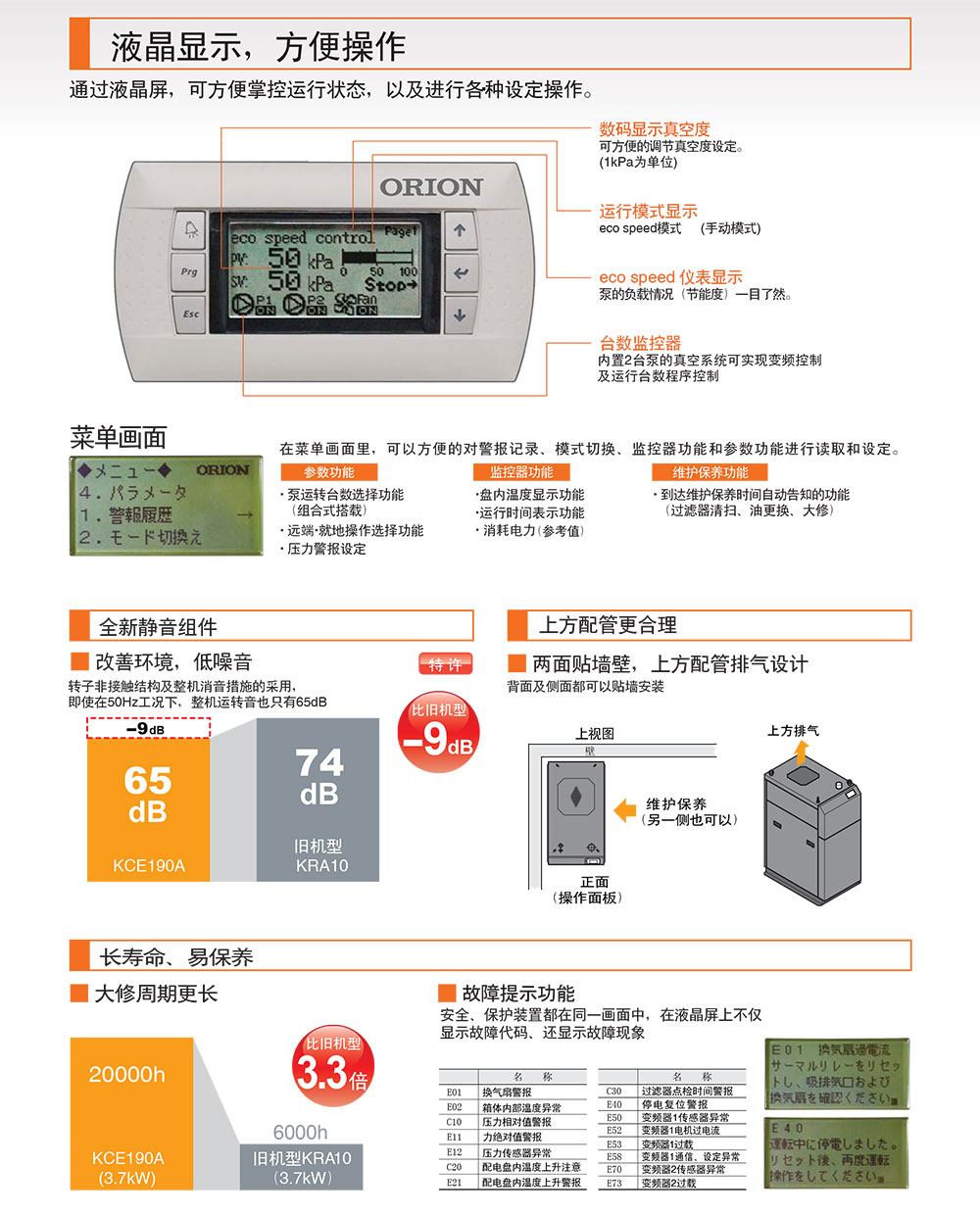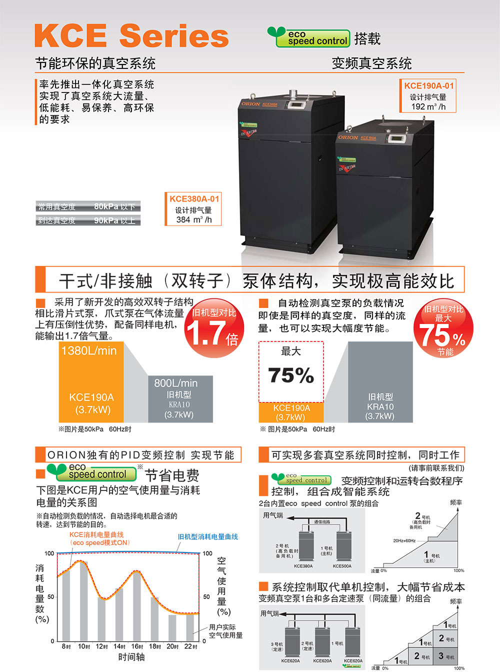 使用新研發(fā)的高效轉(zhuǎn)子(非接觸),實(shí)現(xiàn)節(jié)能,無油式的真空。<br /> 另外,因?yàn)槭欠墙佑|式所以實(shí)現(xiàn)了更靜音。且大幅降低(300Hz一下)的低頻噪音