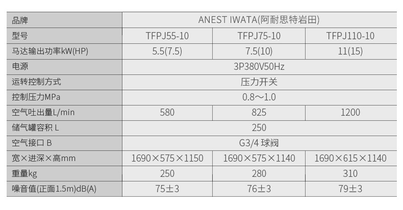 TFPJ75-10 儲氣罐搭載型壓縮機