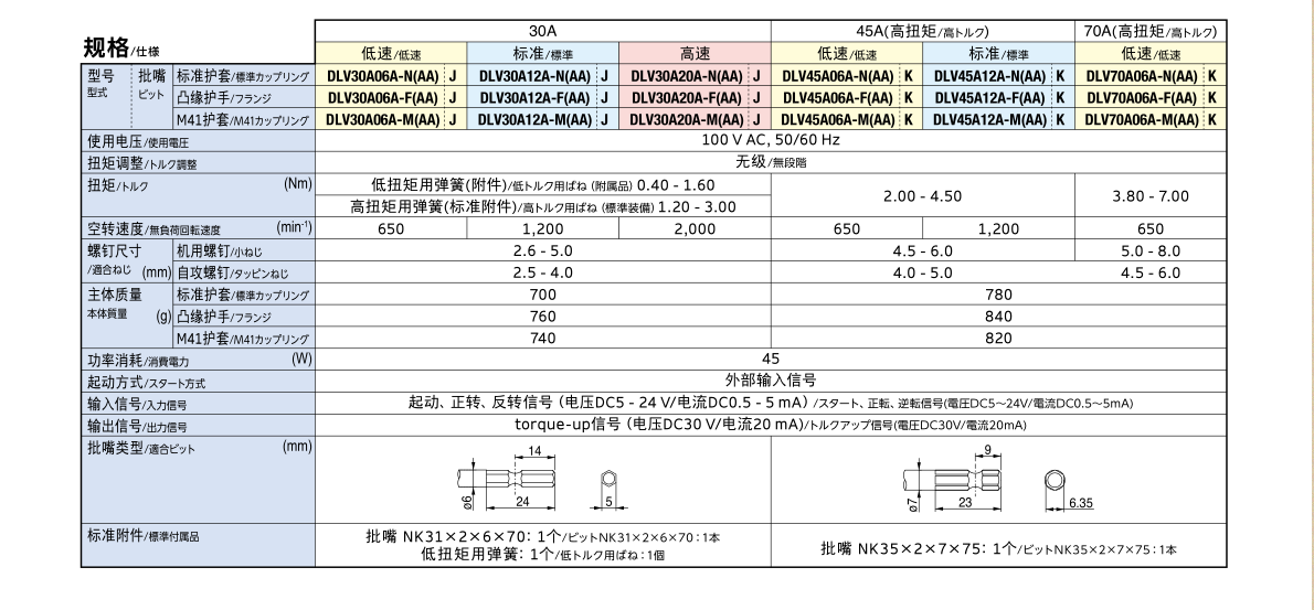 | DLV30A06A-M(AA)J | DLV30A12A-M(AA)J | DLV30A20A-M(AA)J | DLV45A06A-M(AA)K | DLV45A12A-M(AA)K | DLV70A06A-M(AA)K |
