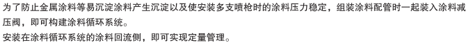 為了防止金屬涂料等容易沉淀的涂料沉淀以及在安裝多把噴槍時穩(wěn)定涂料壓力,