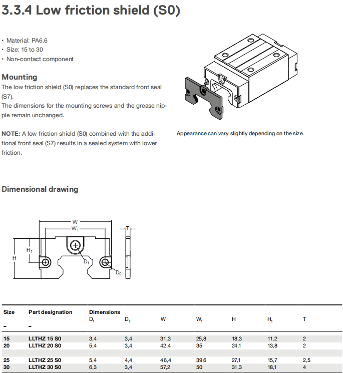 低摩擦防護罩(S0)的非接觸式部件取代了標準的前密封(S7)