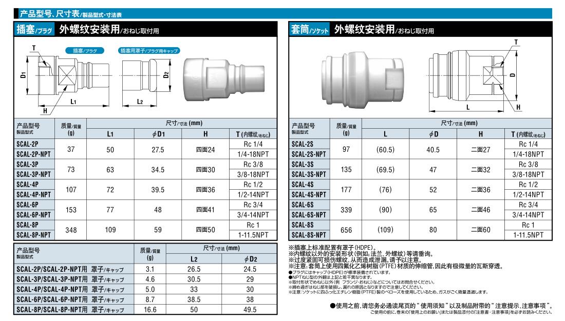 | SCAL-4P/SCAL-4P-NPT | SCAL-6P/SCAL-6P-NPT | SCAL-8P/SCAL-8P-NPT | |||
