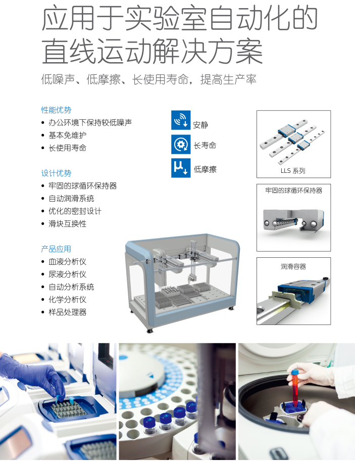 LLS 系列專為工業(yè)和實驗室自動化領域設計,運行平穩(wěn)、噪音低、精度高,同時具有自潤滑和低維護的優(yōu)勢?;撞縿?chuàng)新地采用獨特的滾珠固定板設計,確保其結實堅固且易于操作。高可用性,維護要求低至近于零,對于需要頻繁重復任務(例如取放應用、機器人采樣、3D打印或關鍵醫(yī)療設備應用)的組件至關重要。