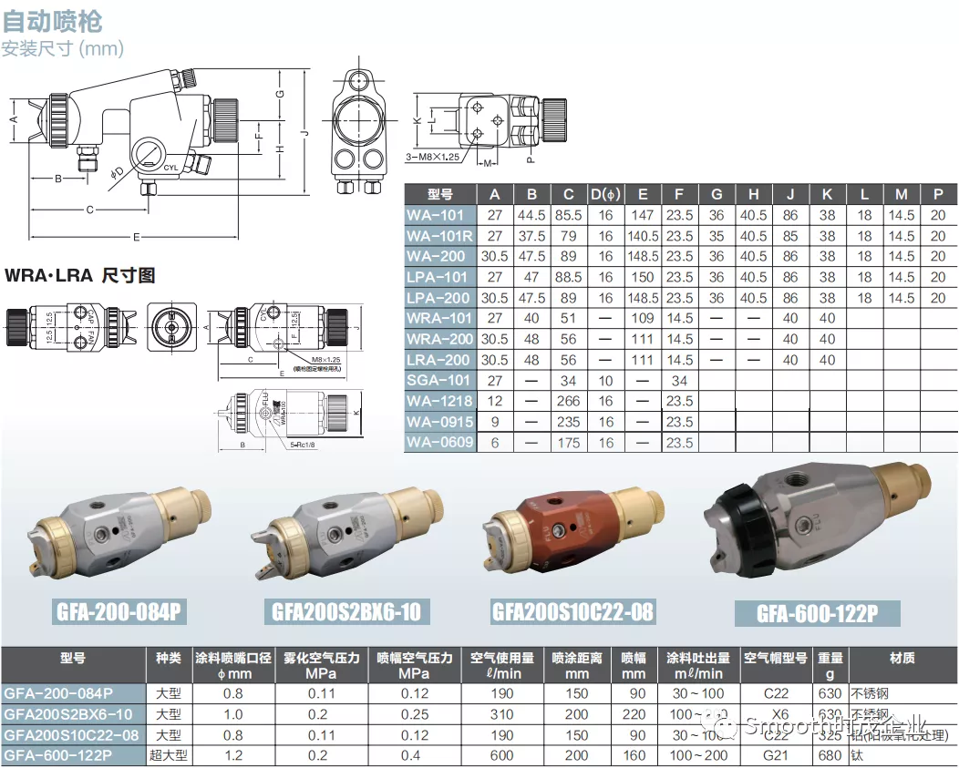 WA/LPA/WRA/LRA/GFA/SGA系列自動噴槍